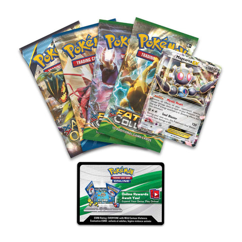 • A special foil Pokémon-EX card: Magearna-EX • 4 Pokémon TCG Booster Packs • A code card for the Pokémon Trading Card Game Online